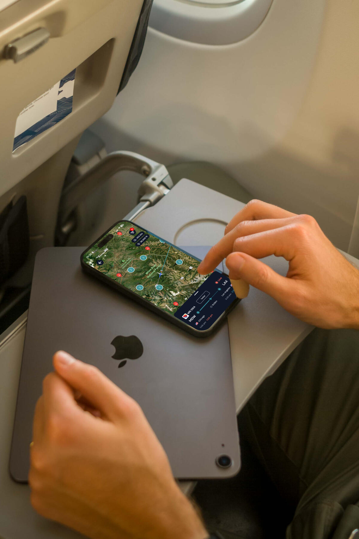 Track your plane in real time with precise ADS-B data — complete with 50,000+ points of interest plotted along your route.